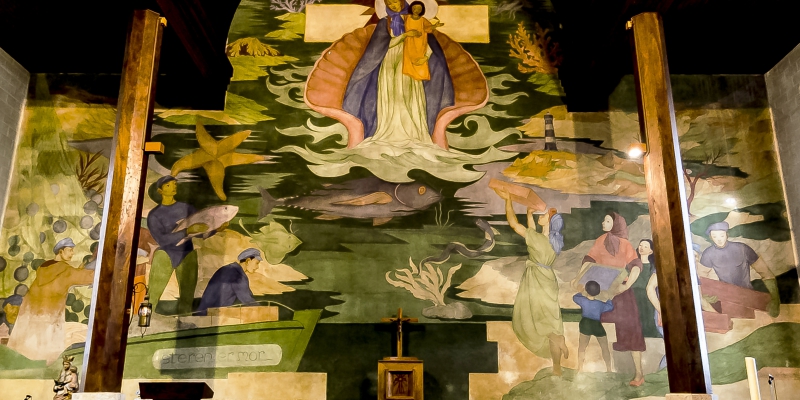 Ce concert permettra de faire connaître l'association "Sauvons la fresque d'Etel" et par là-même la très belle fresque de Xavier de Langlais (photo jointe) qui a grand besoin d'être restaurée car le mur sur lequel elle est peinte est lui-même très dégradé notamment par l'humidité.
